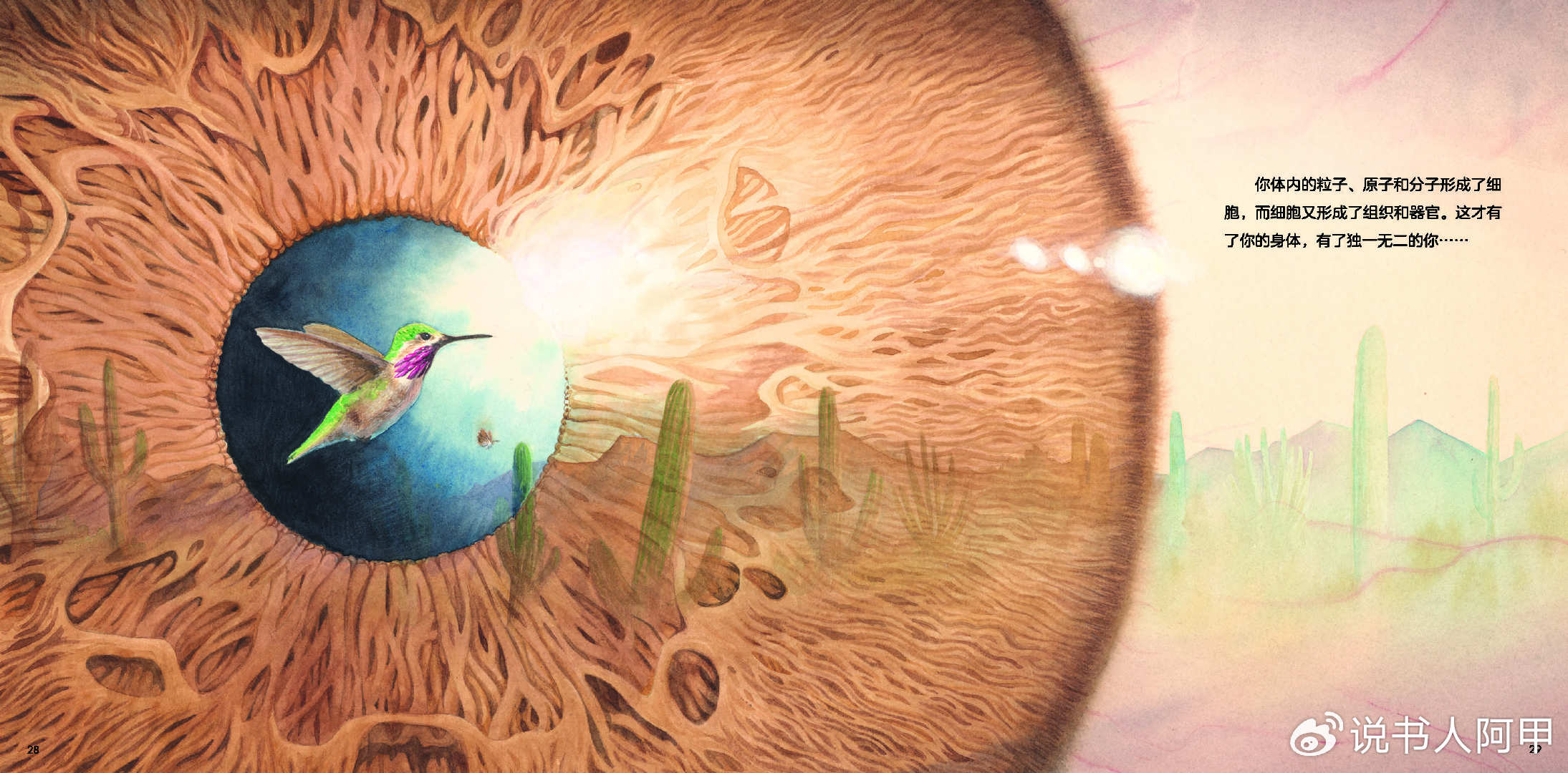 这本书与其姊妹篇《我和宇宙》(2020)遥相呼应,后者侧重于从地球到宇宙的广阔维度,而《宇宙在你眼中》则将读者的目光引向不可见的微观世界。姊妹篇分别展现了宏观和微观的宇宙,形成了一个完整的科学探索闭环。而这本新作更以令人惊叹的视觉效果呈现了一个神奇的“看不见的世界”,通过独特的探索方式传达了对世界和生命的敬畏与启发。