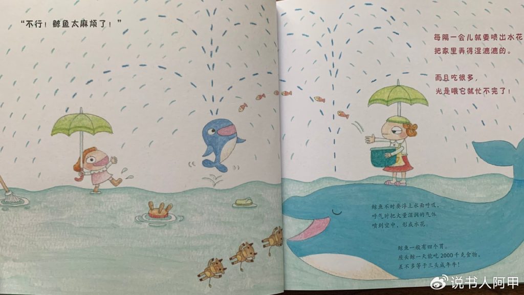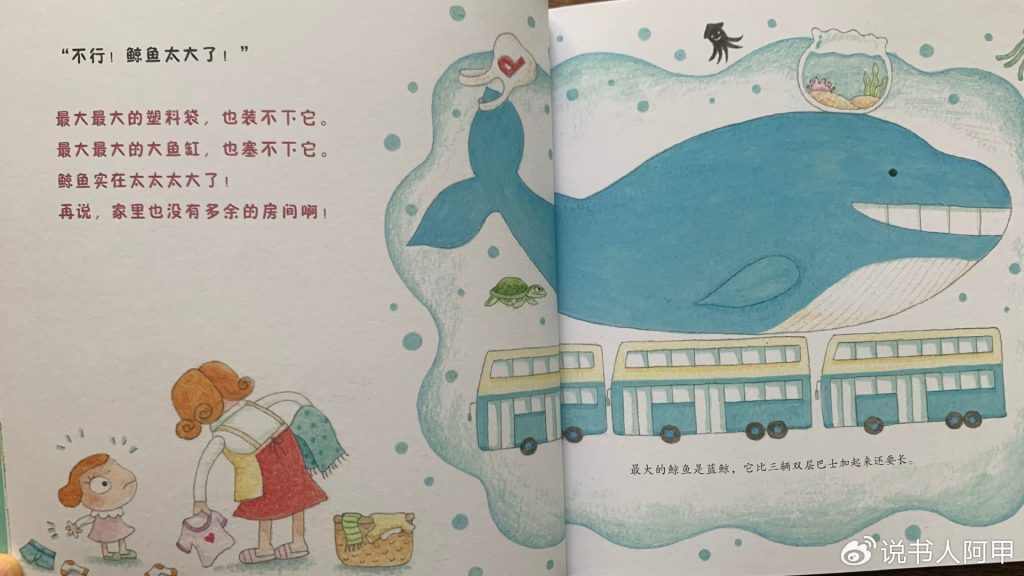 这本书通过小棉花的天真设想,不仅捕捉了儿童的想象力,也展现了他们对世界的简单而深刻的理解。小棉花以自己的方式解决问题——教鲸鱼如何喷水、在家中安排一个“水缸”让鲸鱼住下、甚至考虑为鲸鱼提供健康的胡萝卜大餐,这些情节让人忍俊不禁,却又深深折服于孩子视角中的纯粹和美好。