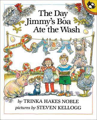 - 重要作品与贡献: 凯洛格的作品通常以水彩和钢笔画为主,故事充满了活泼的能量和荒诞的幽默感。他的代表作包括《哟嗬,宾可!》(Pinkerton, Behave!)和《斯库格岛》(The Island of the Skog),这些作品深受儿童喜爱,帮助他们理解宠物、友谊与冒险的主题。不过我最喜欢的是《吉米的蟒蛇》系列,特别是那本似乎还没有中文版的《吉米的蟒蛇吃掉了晾晒的衣服》(The Day Jimmy’s Boa Ate the Wash)