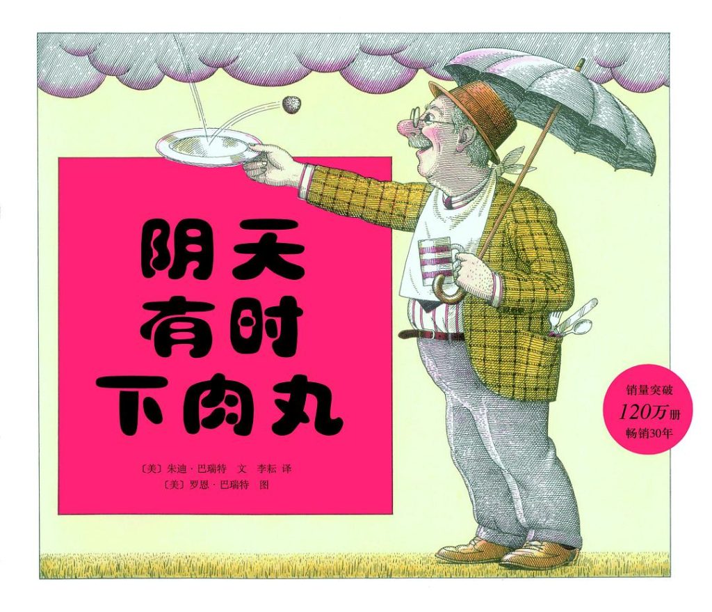 - “Meatballs Falling on a Cloudy Day”(Cloudy With a Chance of Meatballs(Illustrated by Ron Barrett, 1978): This is a whimsical story about food falling from the sky in Chew Town.